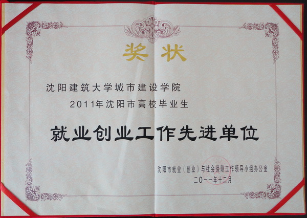 学院荣获2011年度沈阳市高校毕业生就业创业工作先进集体称号
