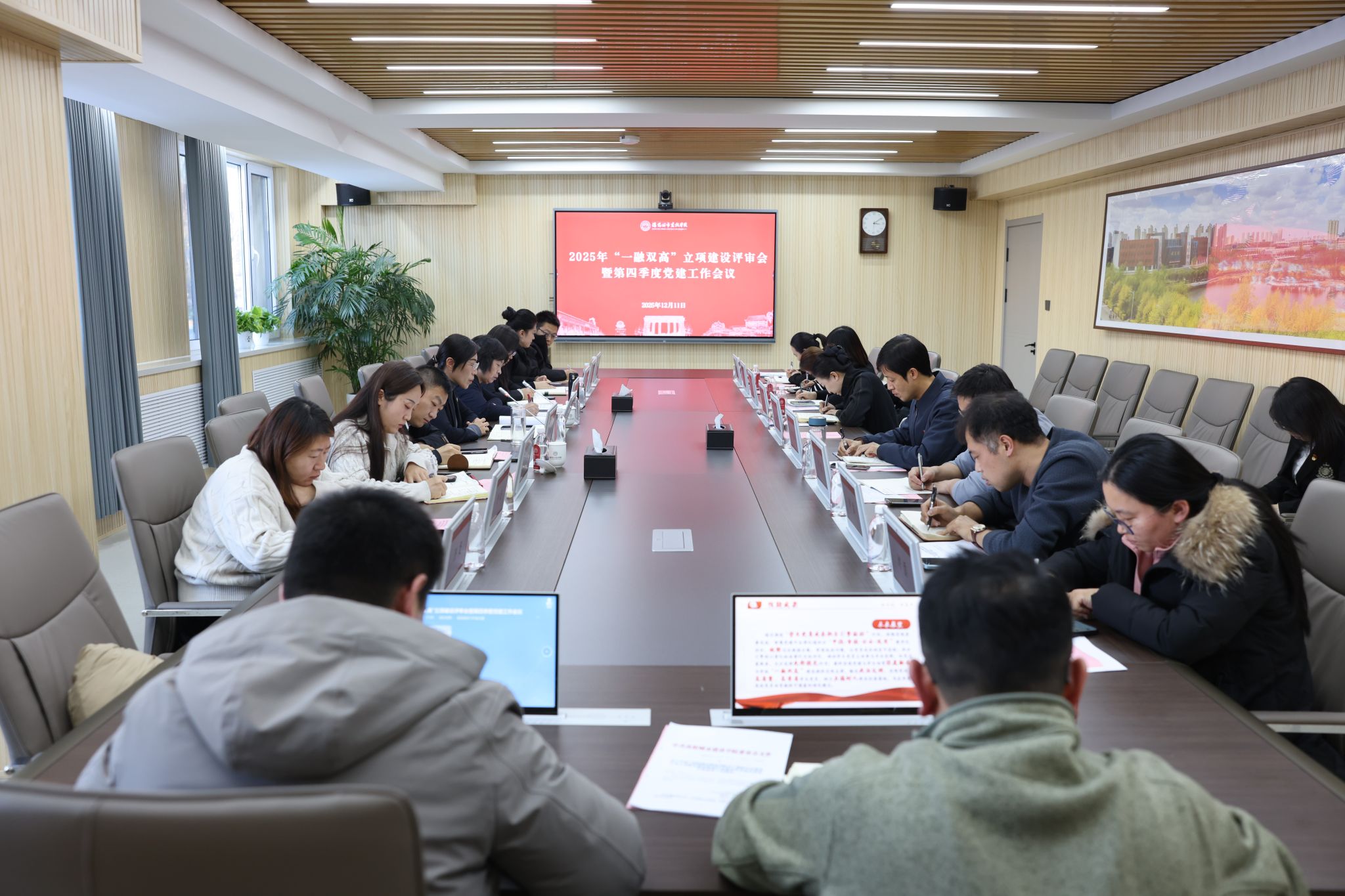 12月11日下午,学校在守正楼105会议室召开2025年党支部书记“一融双高”建设项目立项评审答辩会暨第四季度党建工作会议。党委书记张晓雁,党委副书记、副校长李海燕出席会议。会议由李海燕主持。张晓雁作总结讲话。她对各党支部书记在前期准备和答辩过程中的表现给予充分肯定。在肯定成绩的同时,张晓雁也客观指出了当前学校党建工作中存在的不足,并围绕深化“一融双高”建设和今后党建工作重点方向作工作部署。一是夯实基层党组织建设,...