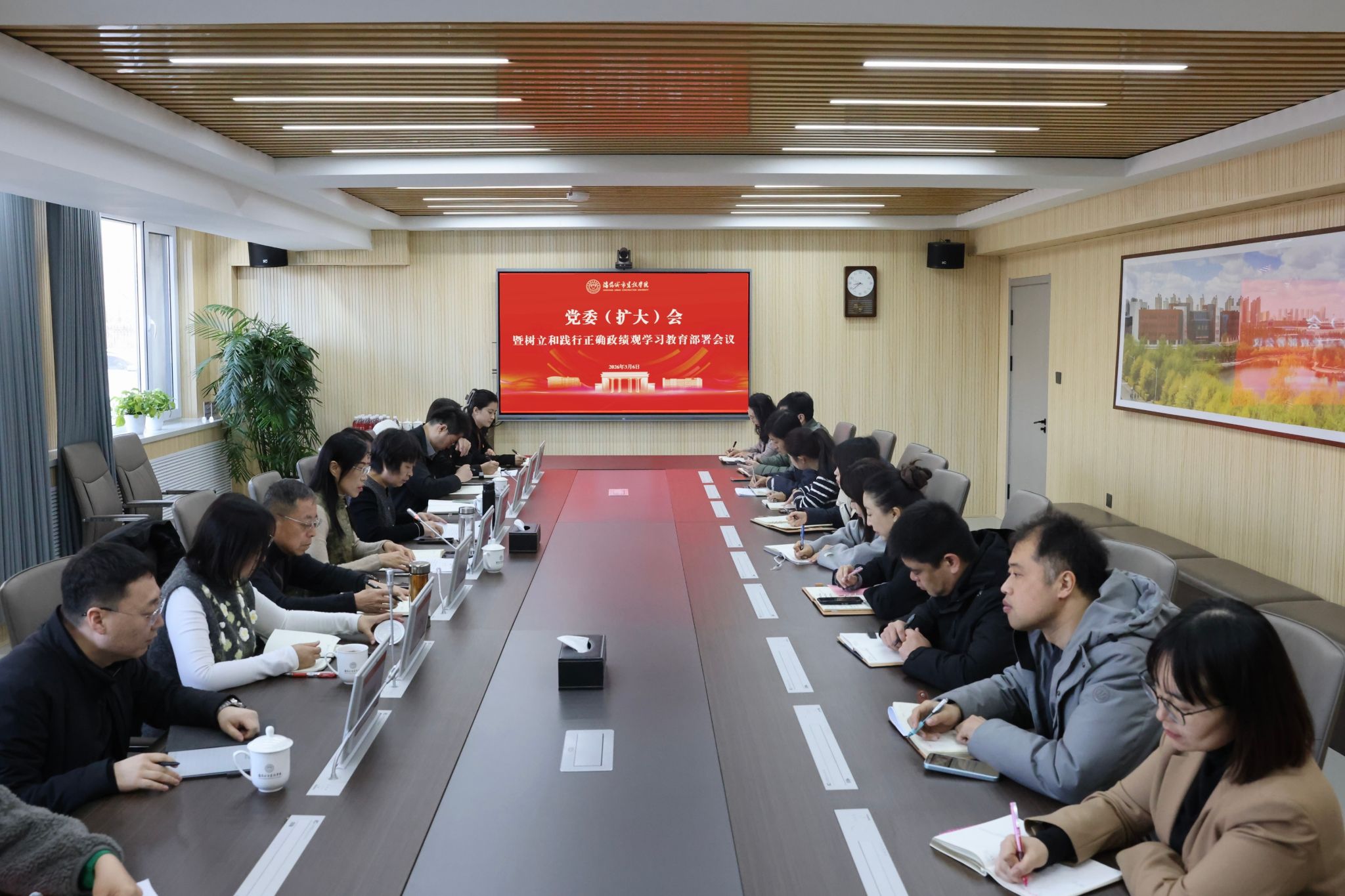 3月6日,沈阳城市建设学院在守正楼105会议室召开党委(扩大)会议,落实省委和省委教育工委有关要求,研究部署树立和践行正确政绩观学习教育工作。学校党委书记、党的建设工作领导小组组长张晓雁,党委副书记、副校长李海燕,纪委书记张涛,副校长李厚艳、王莞菊、吴继君、傅柏权出席会议。张晓雁主持会议并讲话。会议传达学习了省委党的建设工作领导小组会议精神和省委教育工委、省教育厅党组会议精神及省委教育工委学习教育工作专班工作提示相关内容。...