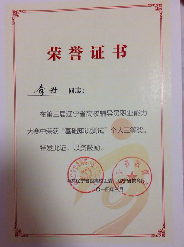 我校辅导员在第三届辽宁省辅导员职业能力大赛中获奖