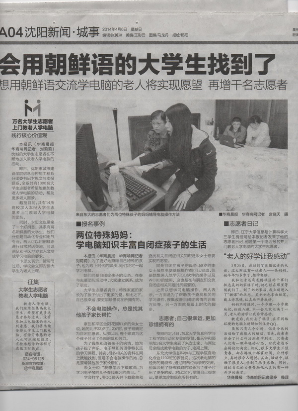我校信息系积极参与《华商晨报》“万名大学生志愿者上门教老人学电脑”活动