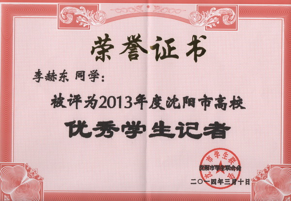 近日,团市委召开2013年度记者团总结表彰大会,对全市范围内评选出来的十余名优秀学生记者予以表彰。我校学生李赫东荣获“优秀学生记者”称号。 2013年,根据团市委有关精神,做好青年文化传播工作,创建精神文明城市...