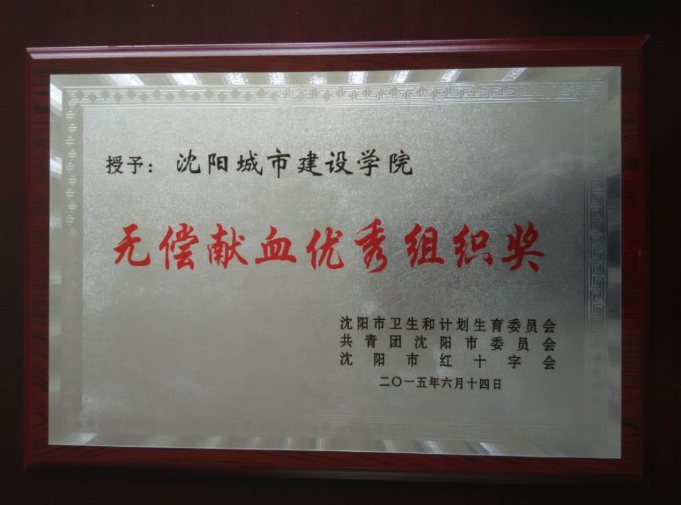 我校获得沈阳市高校无偿献血优秀组织奖