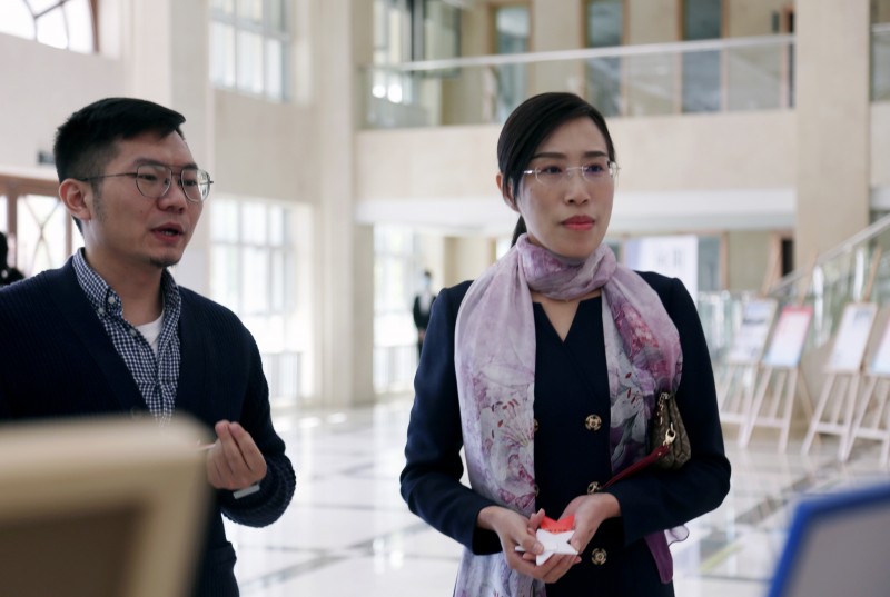 开幕式结束后,全体与会嘉宾共同到一楼、二楼展厅参观了由建筑与规划学院、艺术与传媒学院制作的设计展。