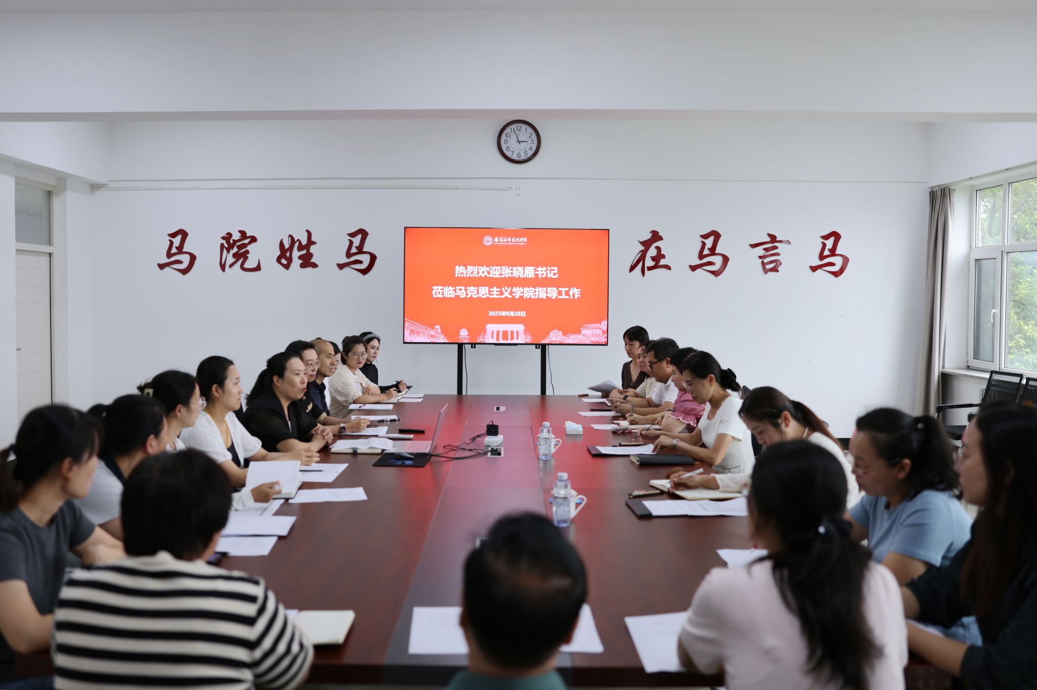 张晓雁对马克思主义学院前期细致的组织工作、教学团队展现出的高度责任感和严谨认真的备赛态度、两个教学团队已经取得的比赛成绩给予充分肯定。她强调,思想政治理论课是落实立德树人根本任务的关键课程,参加全国性教学展示活动不仅是展示我校思政课建设成果和教师风采的宝贵机会,更是对我校思想政治教育工作的一次重要检验。她代表学校对参赛团队及学院提出殷切期望,一要进一步提高政治站位,深刻认识办好思政课的重大意义,以高度的政治自觉和行动自觉投入备赛工作;二要精益求精,反复打磨参赛课程,将最新的理论成果、鲜活的社会实践融入教学,充分体现思政课的思想性、理论性和亲和力、针对性;三要放下包袱、轻装上阵,以最佳的心理状态和竞技水平迎接比赛,展现出自信从容、功底深厚的师者风范。