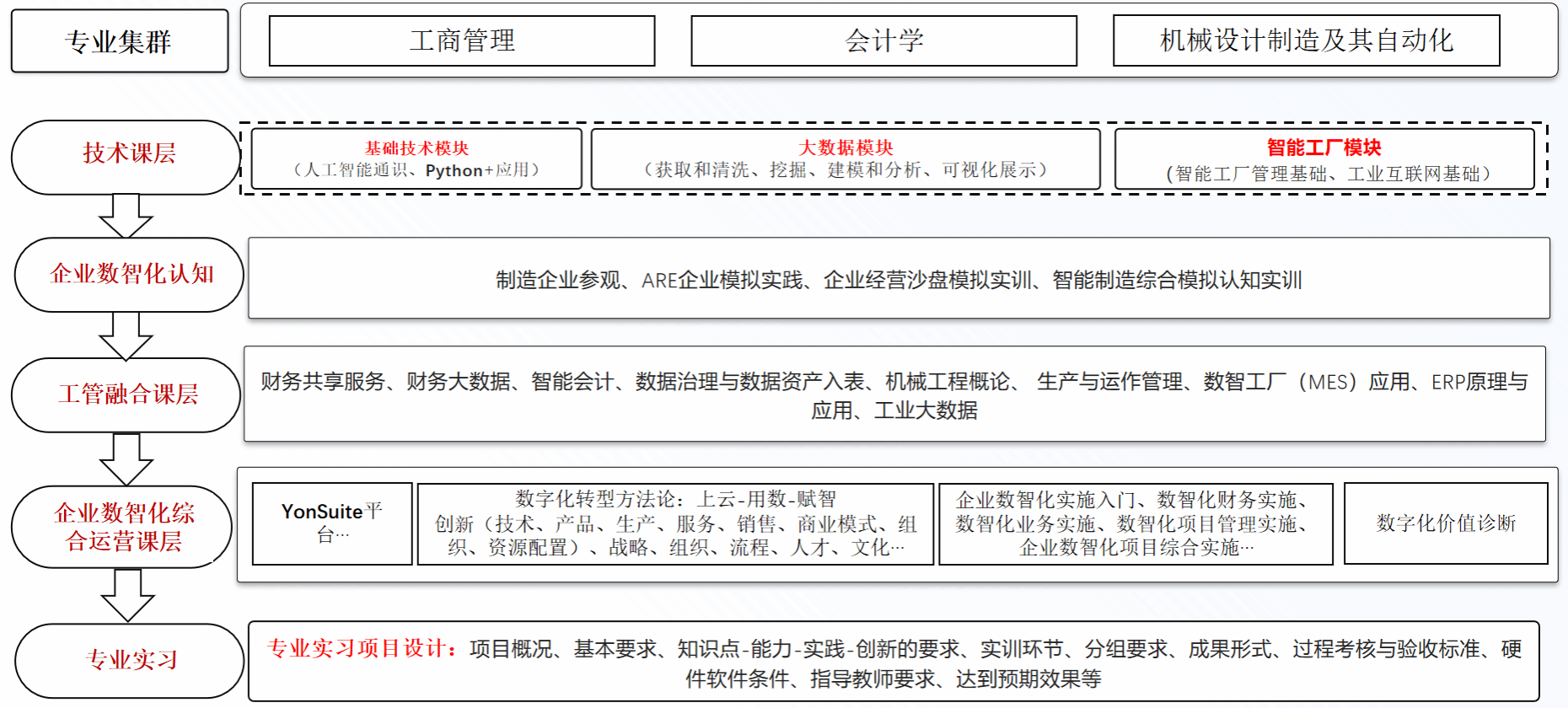 这种融合不是简单的课程叠加。会计学、工商管理专业的学生需要以制造业行业背景为依托,了解制造的核心场景与设备,建立对生产流程的实践认知,熟悉制造全流程,明确各环节的业务逻辑与数据流转方式,并基于设备运作与流程认知,为财务分析和管理决策提供真实的实践依据,确保财务数据与业务实际紧密结合;机械设计制造及其自动化专业的学生需要掌握基础的财务知识和经济思维,要能看懂财务报表,理解成本构成与生产流程的关联,明确技术方案对财务数据的影响,同时树立“技术与经济统一”的意识,在设计制造环节中兼顾成本效益,还要具备系统性思考能力,认识到制造业数智化转型中技术升级与财务效率提升的联动关系,为参与跨部门协作奠定基础。