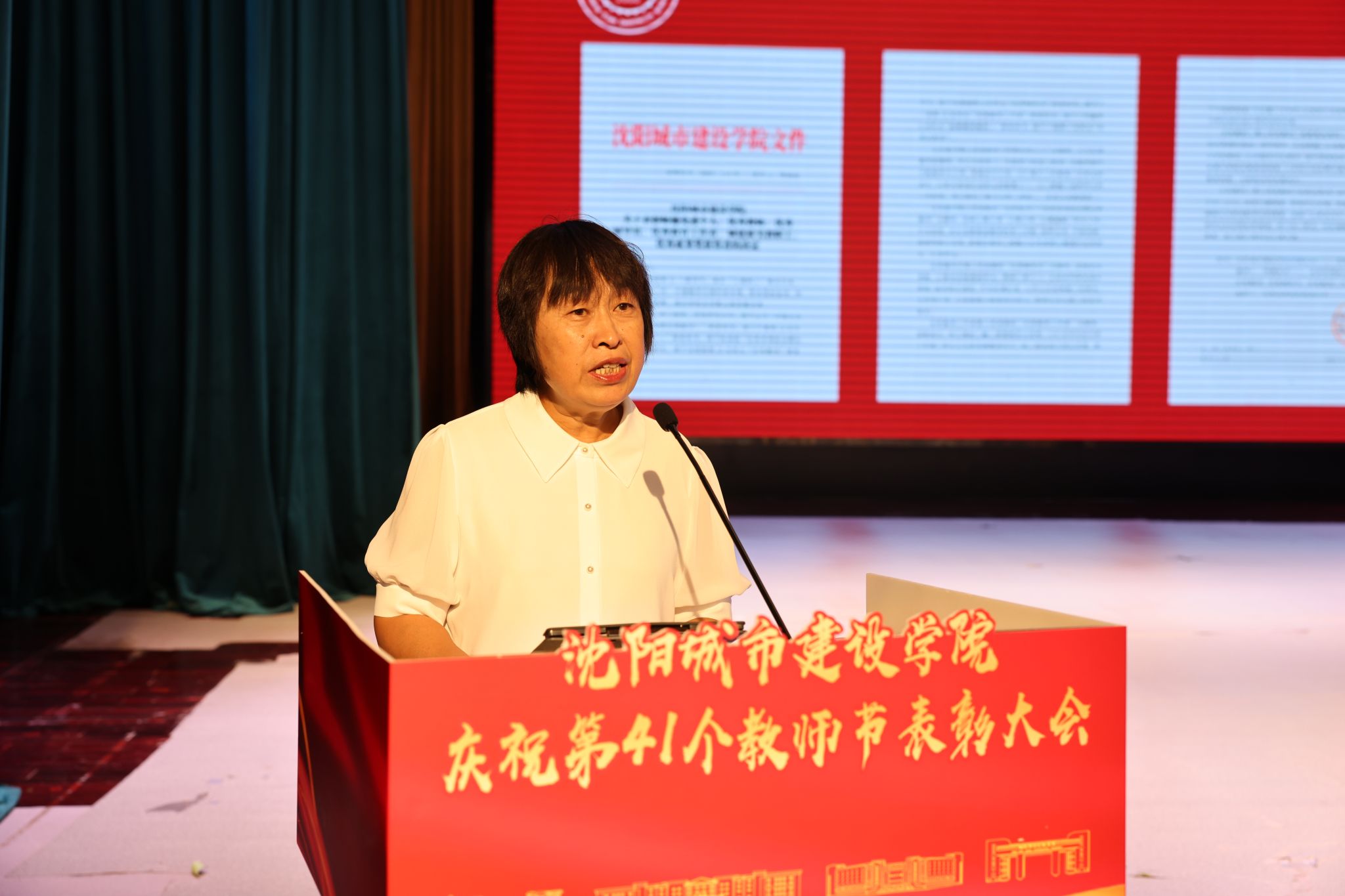 党委副书记、副校长李海燕宣读了《沈阳城市建设学院关于表彰师德先进个人、优秀教师、优秀辅导员、优秀教育工作者、城建最美教职工、优秀成果奖获得者的决定》。