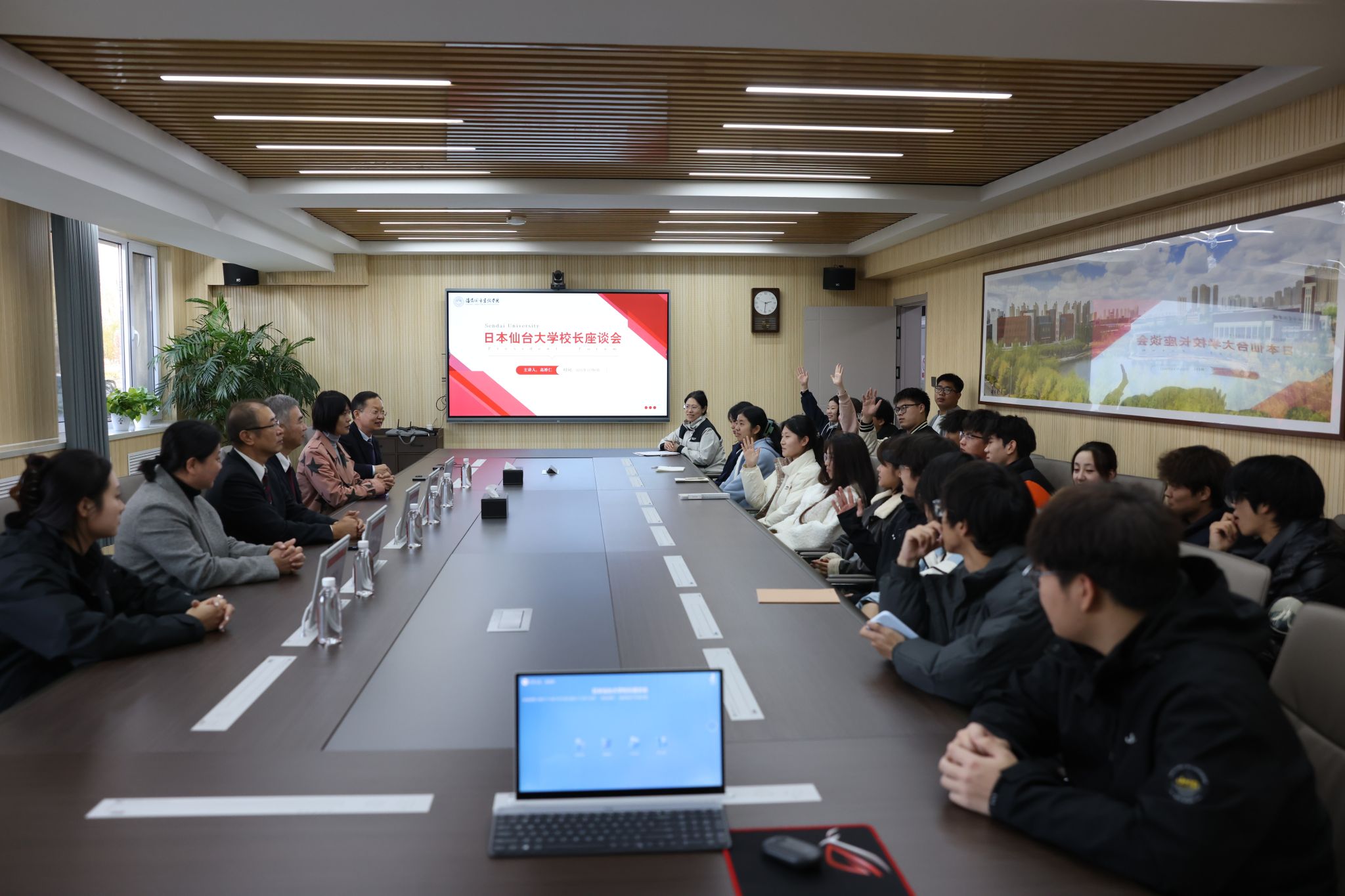 仙台大学国际课长马冬梅、中国办事处总代表李向荣,万叶教育培训学校校长孙丹、校长助理孙雨萌和我校校团委书记王长峰、国际交流处处长李学锋、体育教研部主任姚姝、日语教师胡小雨陪同参加座谈。(撰稿人、通讯员:曾天舒;审核人:李学锋)