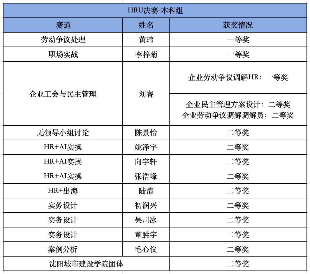 近日,以“智启未来”为主题的2025年第十届中国大学生人力资源创新实践大赛(简称“HRU大赛”)全国总决赛在中国劳动关系学院圆满落幕。我校选派管理学院12名学生参加全国总决赛,斩获一等奖3项、二等奖11项。同时,团队荣获团体二等奖,在全国舞台上充分展现了我校学子的综合素养与专业风采。