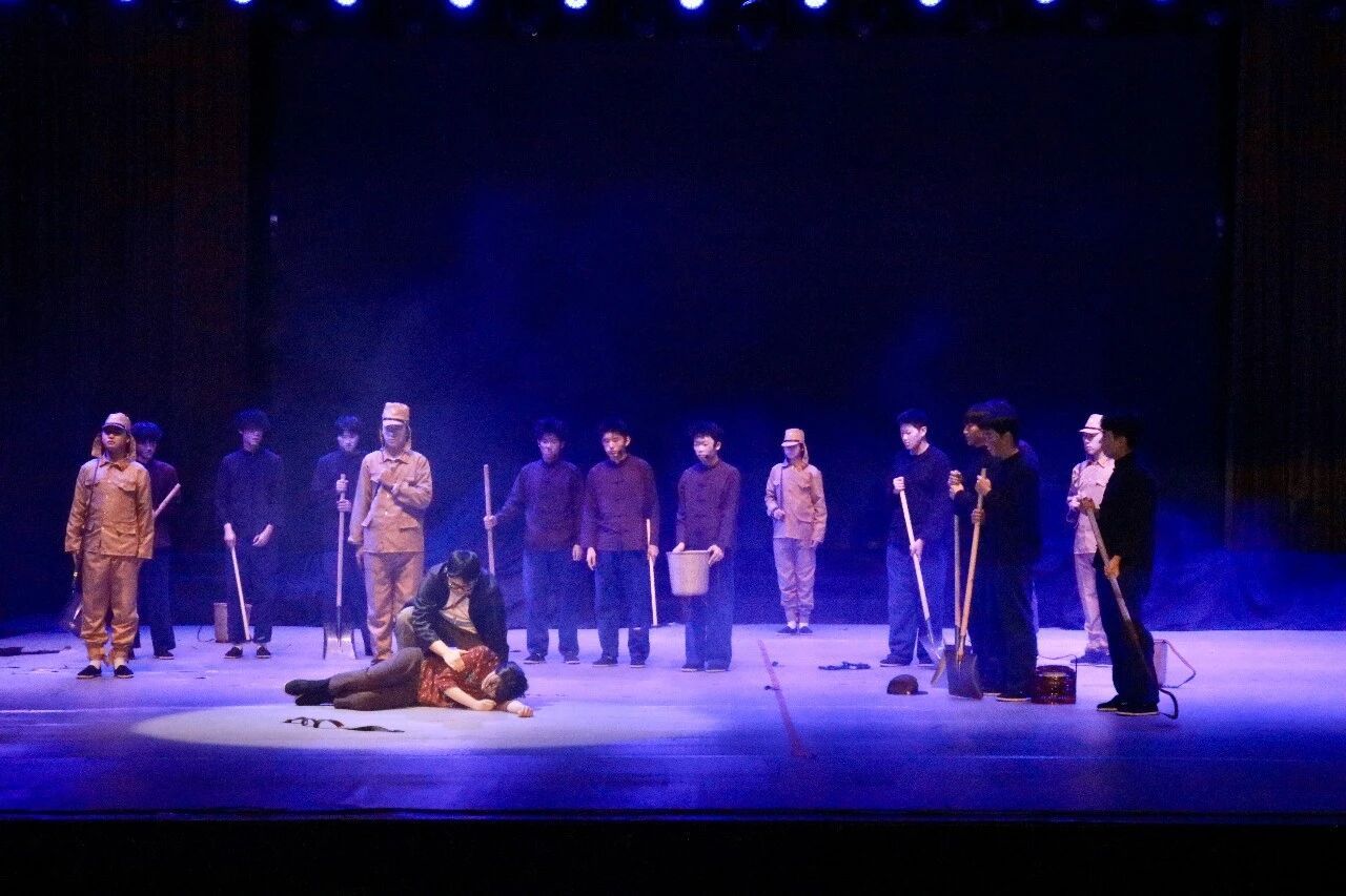 本次舞台思政剧通过四幕剧目生动串联起中华民族从觉醒抗争到强国圆梦的奋进征程。第一幕《时空铸魂》以C919国产大飞机成功返航为开篇,讲述垂尾制造者爷爷孙庆有回溯抗战岁月,赓续先辈嘱托、践行航空报国的传承故事;第二幕《雪原守节》聚焦东北抗日联军铁血将军杨靖宇,再现他率部于濛江雪原孤军奋战,断粮拒降、壮烈牺牲,用生命铸就民族精神丰碑的英雄壮举;第三幕《坑魂不灭》刻画普通人的抗争群像,劳工孙庆有等人秘密筹备反抗,翻译官因妻子惨遭日军毒手幡然倒戈,最终与敌同归于尽、炸毁日军运输卡车,彰显民族危亡之际的血性担当;第四幕《长空铸剑》讲述孙家栋婉拒苏联专家挽留、毅然归国,带领团队攻克燃料数据缺失、火箭谐振异常等难关,舍小家为大家,成功将“东方红一号”送入太空的奋斗历程,诠释了新中国航天人自力更生的科学家精神,更凸显伟大抗战精神在建设年代的赓续传承。