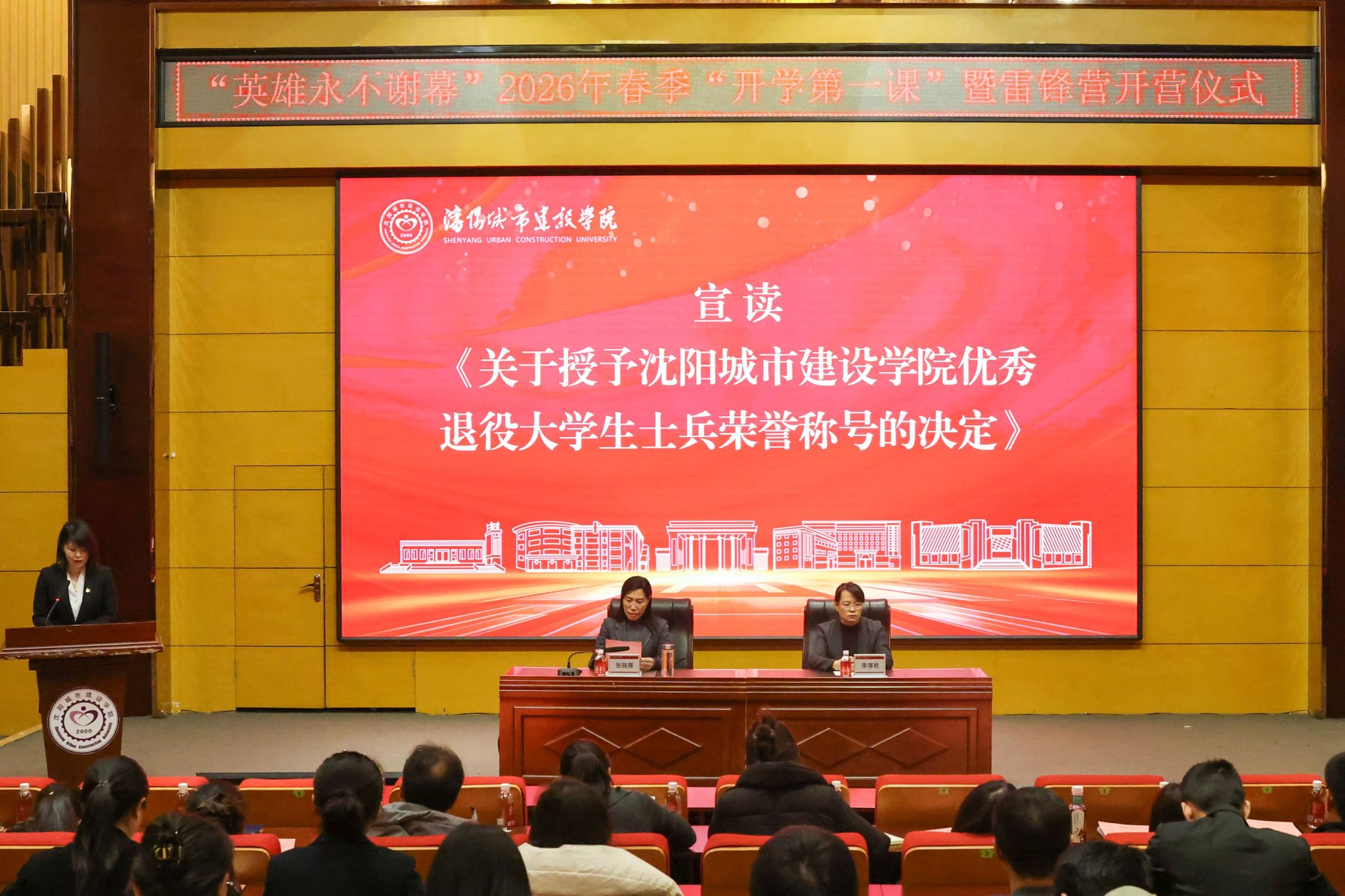 李厚艳宣读了《关于成立沈阳城市建设学院雷锋营的决定》并为优秀退役大学生士兵颁发荣誉证书。