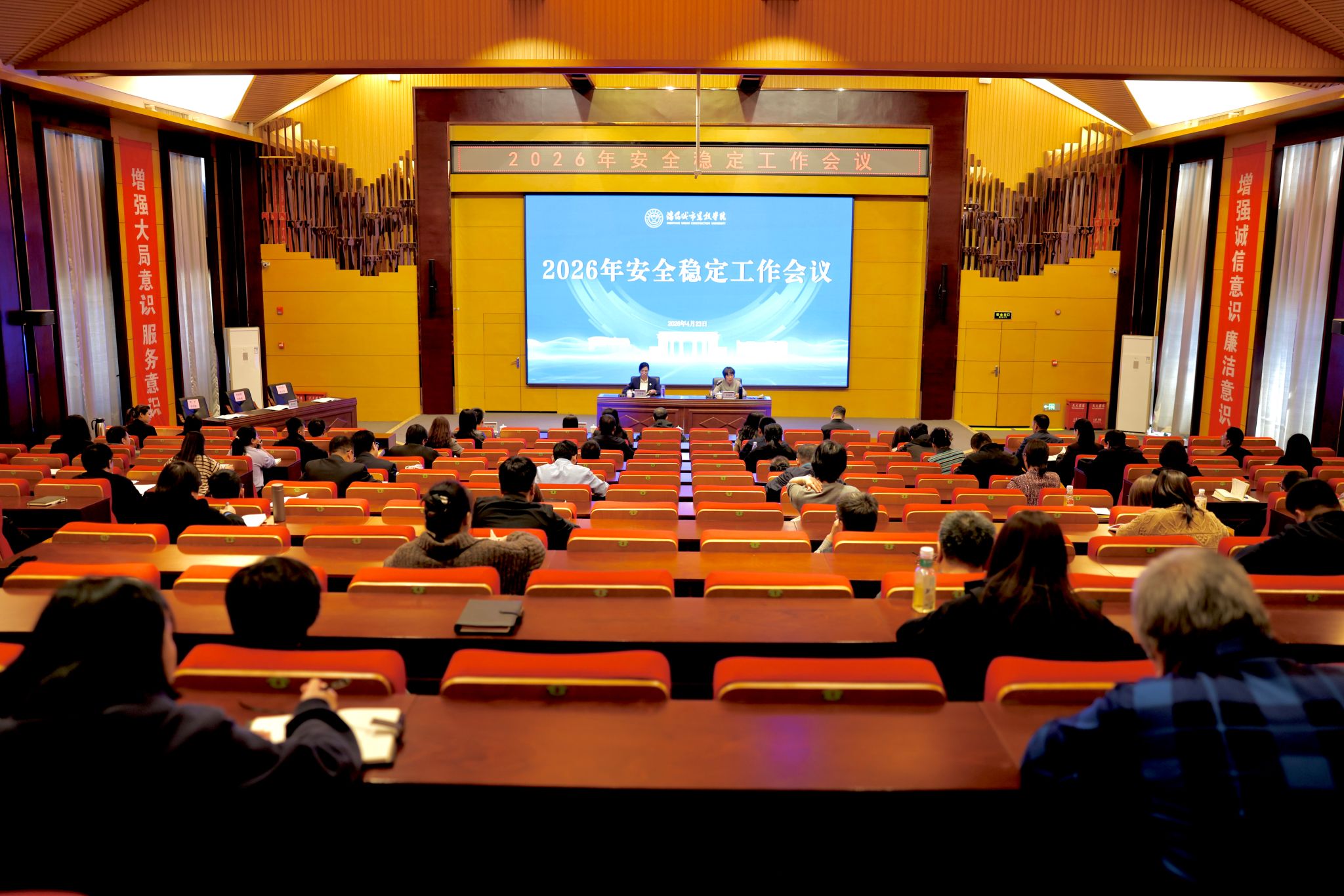 4月23日,学校在留学生院306学术报告厅召开2026年安全稳定工作会议。党委书记张晓雁出席会议并作讲话,党委副书记、副校长李海燕主持会议并对安全稳定工作作总结部署,学校领导张涛、李厚艳、王莞菊、吴继君、傅柏权出席会议。