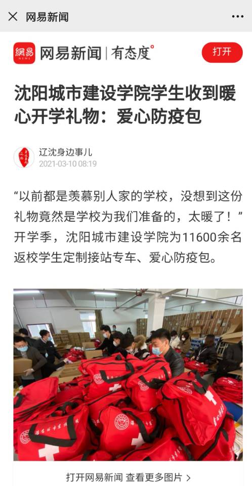 一段段称赞的文字,配上各种精美的照片,有关于“爱心防疫包”的朋友圈内容在沈阳城市建设学院的学生中快速转发。城建学子用这种方式表达了对这份特殊礼物的喜爱。