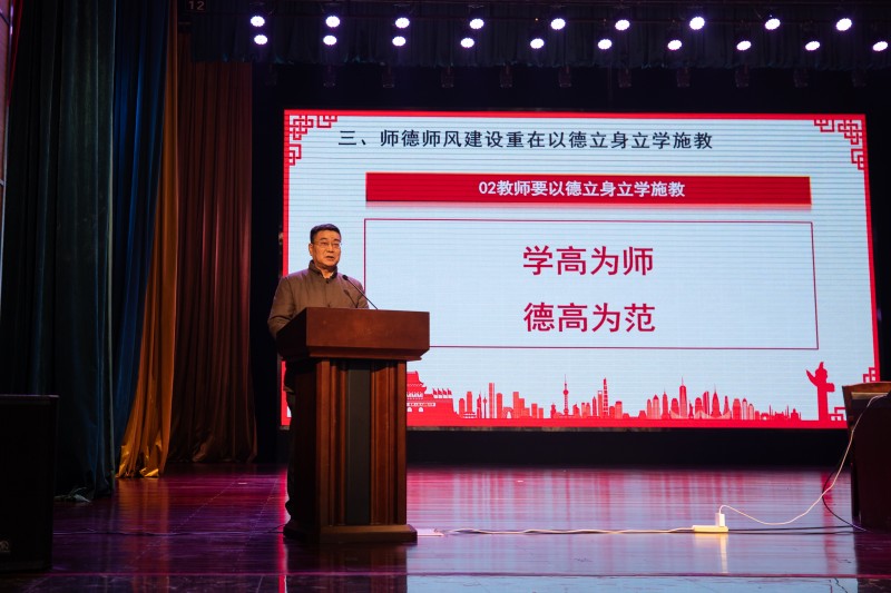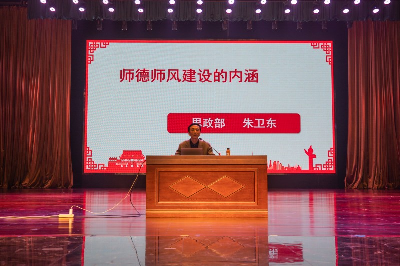 会上,思想政治理论教学研究部朱卫东教授作了题为《师德师风的内涵》的报告。他围绕新时代师德师风的内涵,良好师德师风与立德树人的关系,强化以德立身立学施教等三个方面进行了讲授。充分诠释了师德师风建设的重要性。他指出,习近平总书记发表的一系列关于教育的重要论述,为加强新时代教师队伍建设和师德师风建设指明了方向,提供了根本遵循。诠释了新时代好老师的内涵要义,集中体现了我们党对教师地位的新认识、对教师职业的新要求。教师是立教之本、兴教之源。进一步明确“四有教师”的目标和责任担当。