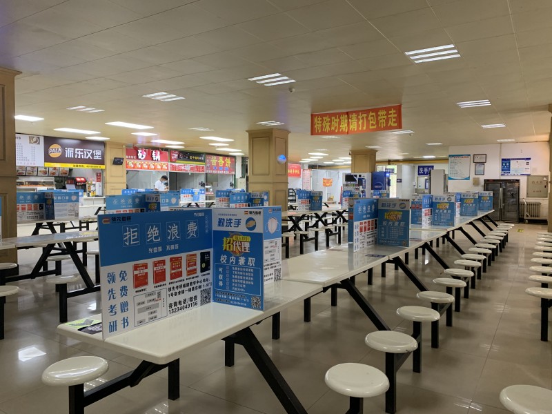 后勤集团认真落实疫情防控工作要求,坚持每天对校园内各公共区域进行消杀。在学生食堂设立就餐引导标识和防疫标语,安装就餐隔离板,为学生创造安全健康的就餐环境。