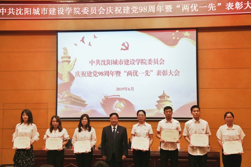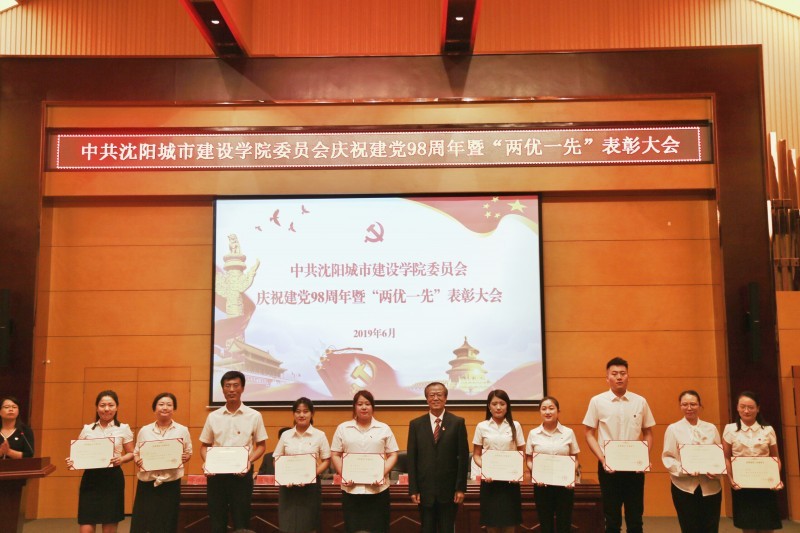 大会在庄严的国歌声中拉开序幕。党委副书记、院长温景文在会上宣读了《关于表彰沈阳城市建设学院优秀共产党员、优秀党务工作者和先进基层党组织的决定》,与会领导分别为获得优秀共产党员、优秀党务工作者和先进基层党组织的个人和单位颁发证书和奖牌。