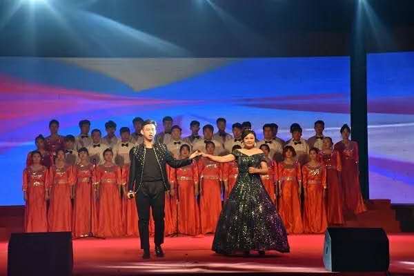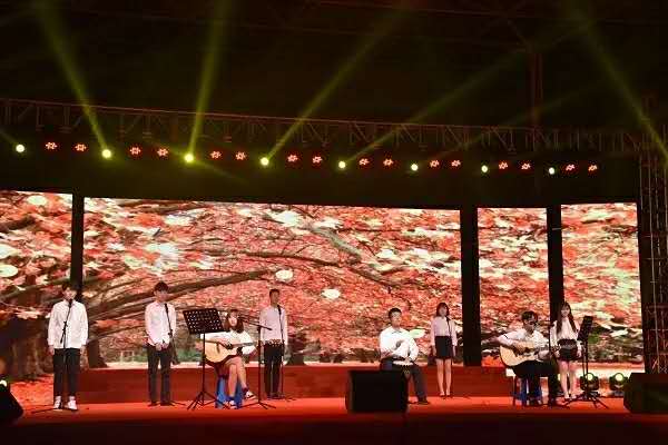 为庆祝改革开放四十周年,学生们以一曲《我爱你,中国》为祖国献礼。