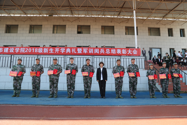 9月7日,学校在体育场召开2018级新生开学典礼暨军训阅兵总结表彰大会。学校领导温景文、李厚艳、逄淑伟、张海玲,中国人民解放军某部上尉、军训团团长张军和各院系领导出席大会并在主席台就座。大会由副院长李厚艳主持。全体辅导员、3000余名新生和学校有关人员参加大会。