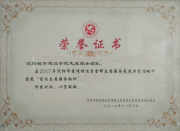启动仪式上,沈阳市文明办主任刘庚杰同志宣读了2017年沈阳市宣传推选志愿服务“四最”先进典型名单。我校志愿服务团队荣获2017年宣传推选学雷锋志愿服务先进典型“最佳志愿服务组织”荣誉称号。