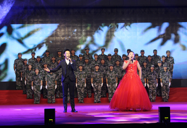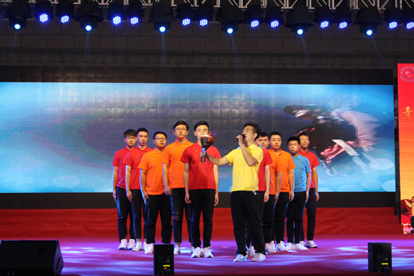 青年要有担当、眀使命。励志红色歌曲《我站在的地方是中国》、《红旗飘飘》、《假如战争今天爆发》激起了全场师生的民族自豪感和自信心,也提醒着青年学子们要树立起强军兴军、投身伟大复兴中国梦的信心。由环境系教师刘然与应用科技学院教师张书瑞合唱的《阳光路上》高亢嘹亮、余音绕梁。