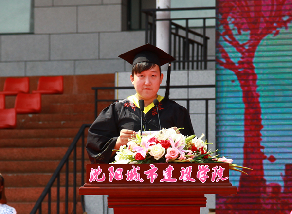 土木工程系土木工程专业2013级学生吴晋豪代表全体毕业生发言。他表达了对母校的深深眷恋,感谢母校给与全体毕业生多年来的关心教导和悉心培养。他表示在以后的生活和学习中,将继续秉承“业精弘德,学勤出新”的校训精神,努力拼搏,在社会的大舞台上实现自己的人生理想,不负青春年华。
