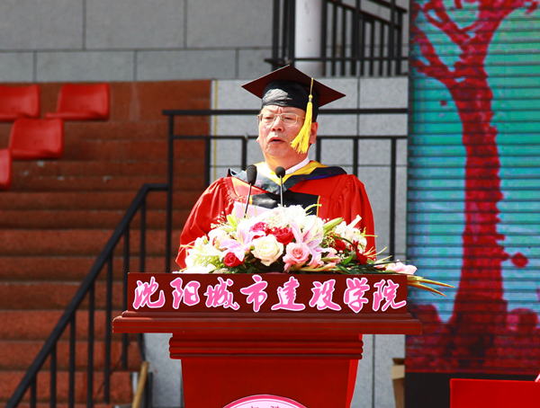 校长王军在典礼上作了讲话。他回顾了毕业生们在校期间学习生活的点点滴滴,肯定大家取得的可喜成绩,对大家顺利完成学业表示祝贺。他指出,几年来,大家与学校共同成长,一起进步和发展,彼此都烙上了深深的痕迹。今日的城建学子,明天就要成为城建校友,无论身份怎么改变,母校与大家的感情不变,母校永远是各位毕业生的精神家园。最后,他为毕业生送上包含深意和浓烈情感的寄语:要把学习当做首要任务,作为一种责任、一种精神追求、一种生活方式。坚持学习就会有无穷的发展动力,广阔的发展空间;要把创新当做前进的重要动力,“苟日新,日日新,又日新”,将在校所学用于社会实践当中,在工作岗位上不断创新创造,再获新的荣耀;要把追求极致当做工作奋斗的目标,耐得住孤寂,受得住困苦,不计较一时的得与失,只求长耕细作;要把积极态度当做职场发展的法宝,适应岗位需求,转变态度,踏实工作,提升价值,让自己更出色。王军校长向全体毕业生送去母校的祝福,愿毕业生们朝着全新的目标,满怀信心,迈出崭新的一步,母校永远是大家最温暖的家!