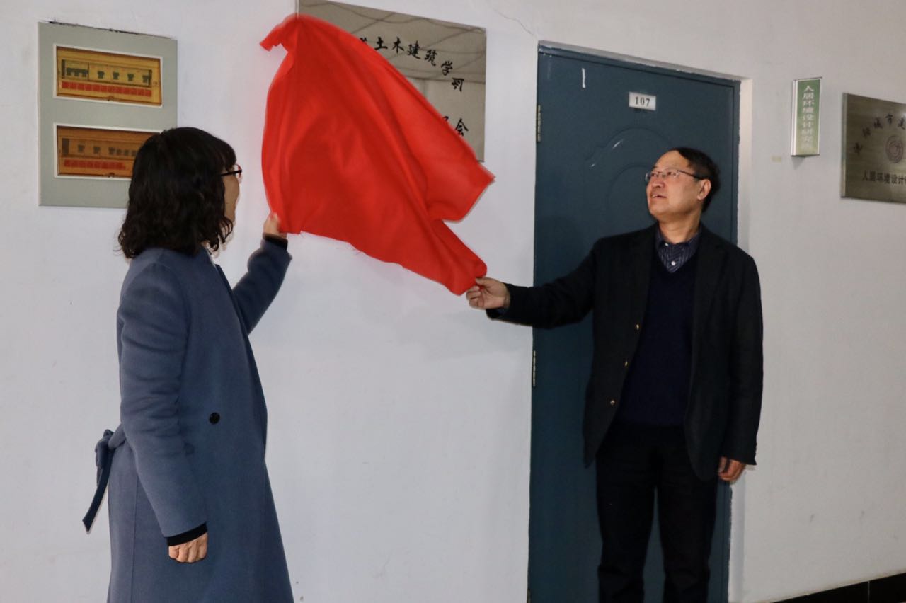 图片2:副校长李海燕与辽宁省土木学会秘书长顾南宁共同为历史建筑学会揭牌