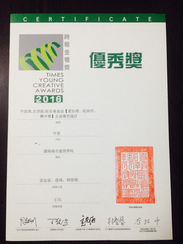 时报金犊奖在大陆与台湾广告设计方面具有较大的社会影响力,在协助广告业界培养广告新兵,鼓励并提升新一代广告新鲜人创作水平起到积极促进作用,是获奖率较低含金量较高的奖项。因其专业的权威性和公正性,被称为广告界的奥斯卡奖。(通讯员:王珏、周海斌)