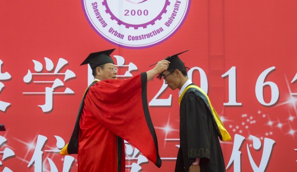 在庄严的国歌声中,典礼正式开始。副校长李雪艳宣读了2016届毕业生毕业及学位授予情况,校长、学位评定委员会主席王军为各专业学生代表进行了授位,学位评定分委员会主席、主任、副主任为毕业生代表颁发毕业证书。随后,副校长张海玲宣布了获得学校优秀毕业设计论文、学校优秀毕业生及辽宁省普通高等学校优秀毕业生的名单,党委书记崔景懿和副校长张向东、李雪艳分别为获奖学生颁奖。