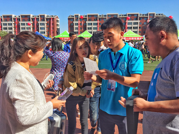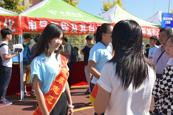 清晨的空气有些凉,太阳公公还没有抻起懒腰,看似宁静的校园其实早已活力飞扬。绿绒毯一样的体育场上,工作人员们匆匆的身影奔忙。我已记不得第一个宣传板是几点到位的,也记不得平均一个工作人员搬了多少张课桌,更记不得多少人从凌晨忙到现在……我只记得我们身上的责任——迎新。