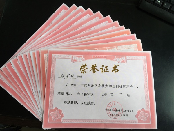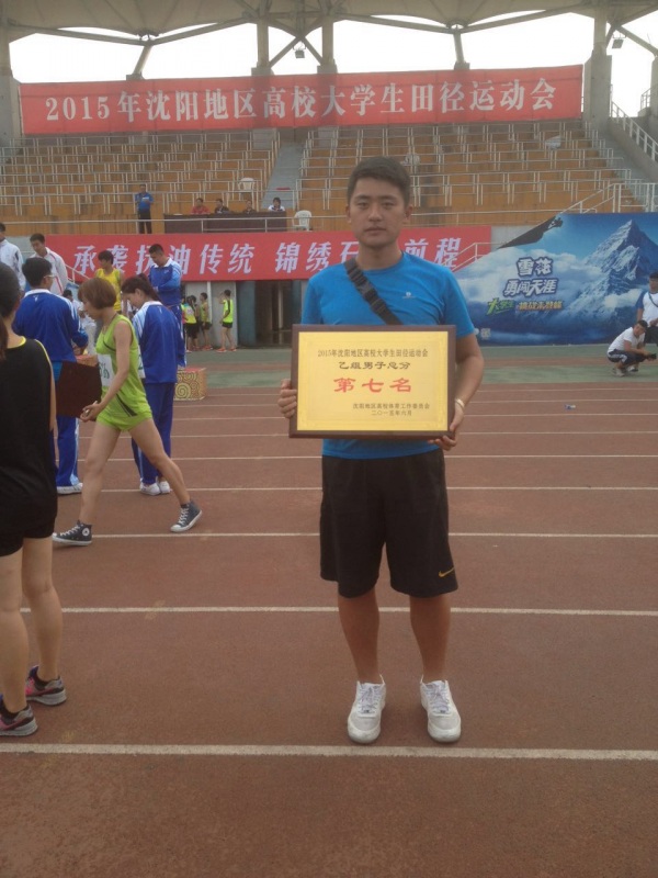 沈阳地区高校田径运动会于近日在辽宁石油化工大学举行。本次运动会共有沈阳地区30余所高校参赛。经过两天的激烈角逐,我校选派的运动员分别摘取男子三级跳第一名、男子立定跳远第一名、男子跳远第二名、女子跳高第三名、女子跳远第三名,获得男子团体总分第七名,团体总分第八名的好成绩。