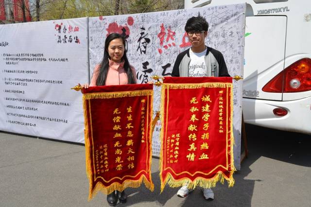 此次活动通过前期宣传,共在校内招募到70余名志愿者,他们全程为义务献血的师生提供细致的接待和服务。献血前的红糖水、面包和饼干,献血中的拍照留念和关切的问候,献血后的水果、鲜花和纪念品,细微之处无不体现志愿者的责任感和使命感。活动当天,团委教师程诗杰代表学校接受辽宁省血液中心和沈阳市血液中心联名授予的锦旗,并接受辽宁电视台“都市新闻眼”栏目专题采访。