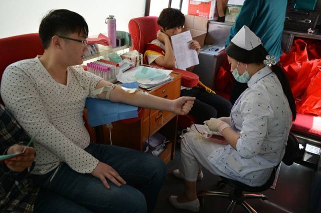 活动当天,沈阳血液中心的两辆义务献血车早早就停在第一教学楼前,医护人员认真准备各项环节,校园社团薪火社的成员和志愿者们热情饱满,随时准备为前来献血的师生安全采血并提供最贴心的服务。中午下课铃响起,活动迎来了第一个高潮,师生们纷纷前来登记信息,填写献血申请表。经初步问询,合格者顺利登上献血车,又经过身高、体重及血压的测量,医护人员的反复问询,血液初检等程序,最终让符合条件的师生进行献血,那鲜红的带着激情与活力的青春热血缓缓流入采血袋,笑容绽放在献血的师生脸上。活动的第二个高潮出现在下午放学时分,大量师生围绕在采血点,不断充实着城建热血青年的队伍。据统计,活动当天献血者211人,其中女生63人,男生148人,共采集到血液74580CC, A型血44人,B型血78人,AB型血28人,O型血61人,有23人献血200CC,48人献血300CC,138人献血400CC,2人献血340CC。检测中未发现稀有血种,献血者无一人出现异常反应。