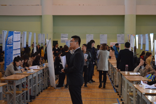 3月22日,学校在第一教学楼3楼室内体育馆举办了2015届毕业生春季供需见面会。
