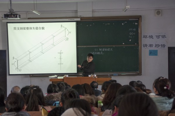 经过各系(部)推荐,有11名教师参加了当天的决赛。比赛中,参赛教师按抽签次序依次进行15分钟的教学展示,参赛教师在讲授课程的过程中,结合课程实际进行了案例教学、启发式教学,恰当的利用多媒体辅助教学,逻辑性强,理论联系实际,展示出了学校青年教师扎实的教学基本功和授课技巧。于明鑫老师所讲授的《钢结构设计原理》,围绕一起钢结构事故展开,结合动画演示了钢梁失稳的全过程,通过具体的工程实例介绍了影响钢梁稳定的因素,最终得出提高钢梁稳定性的具体措施,教学方法生动直观,深入浅出,博得在场评委的一致好评,获得了本届大赛一等奖。基础部尹慧、管理系刘阳获得二等奖,市政与环境工程系于磊鑫、建筑与艺术系许德丽、基础部曹晨获得三等奖。