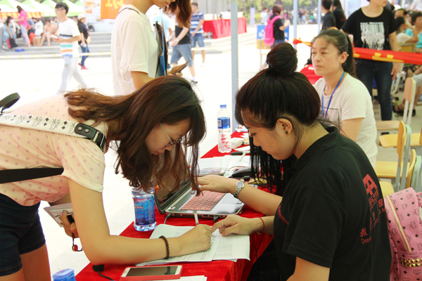 嘴角上扬是你们的统一表情,那是你们发自内心的微笑。从车站的接站到校园的领队,从服务站的热情服务到宿舍行李的搬运,到处都有你们的身影。
