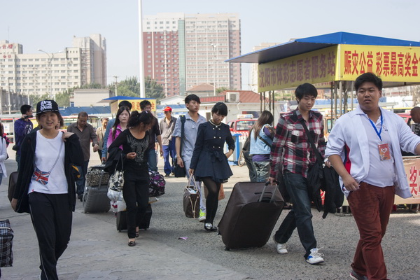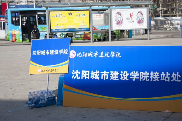 在沈阳北站和沈阳站,迎新志愿者高举学校名牌,在出站口引导。针对火车站出口较多的情况,志愿者进行了明确分工,各负责一区,确保无一遗漏。