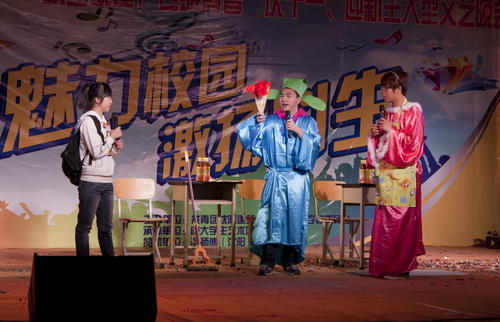 整台晚会分为《相约城建》、《飞舞青春》、《放飞梦想》三个篇章。热闹的开场舞《盛世华章》拉开了全场晚会的帷幕。学生们的精彩演出让这个秋天的夜晚变得格外灿烂。魔术表演《神奇》展示了变幻莫测的魔术世界、《大变活人》更是让所有人触目惊心;建筑与艺术系带来的搞笑舞《原来是美男啊》,通过各种肢体语言和夸张的表情凸显学生的奇妙创意,场上手舞足蹈,场下爆笑与掌声不断;广播电台的原创小品《相约城建》,内容生动、寓教于乐,引得观众笑声连连;大学生艺术团带来的《街舞》更是感染了全体观众,伴随着劲爆的音乐台上台下共舞青春。晚会最大亮点出现在新生辅导员代表奉献的《歌曲串烧》,与平时的或严厉或温婉不同,站在舞台上的辅导员活力四射,神采飞扬,引得台下学生萤火挥动,更有热情的观众跑到台上送花,又引得台下掌声阵阵,尖叫连连,将整台晚会推向了最高潮,整个运动场欢歌一片,成了欢乐的海洋。