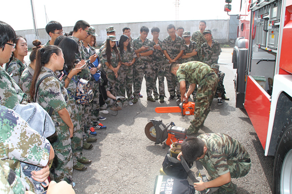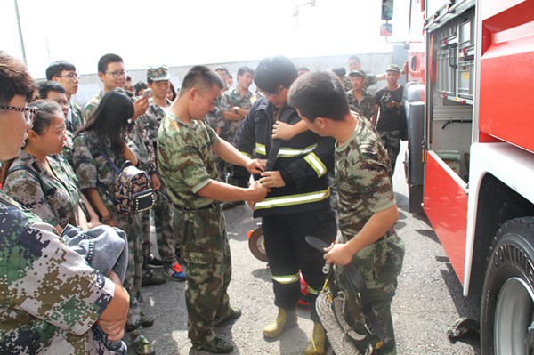 学生代表在消防支队教官胡光雷、高恺超的指导下了解了消防安全的基础知识,学习并体验了消防装备、消防营救器材的使用,参观了消防队员的内务、学习生活区域。在参观学习过程中,我校学生表现出极其浓厚的兴趣,不断向教官发问并寻求指导,积极踊跃参与实践演练。