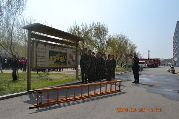 4月20日下午,学校2016年首次消防演习活动在F座寝室楼前拉开帷幕。本次活动由保卫处与浑南新城消防队联合举办,学生处承办。
