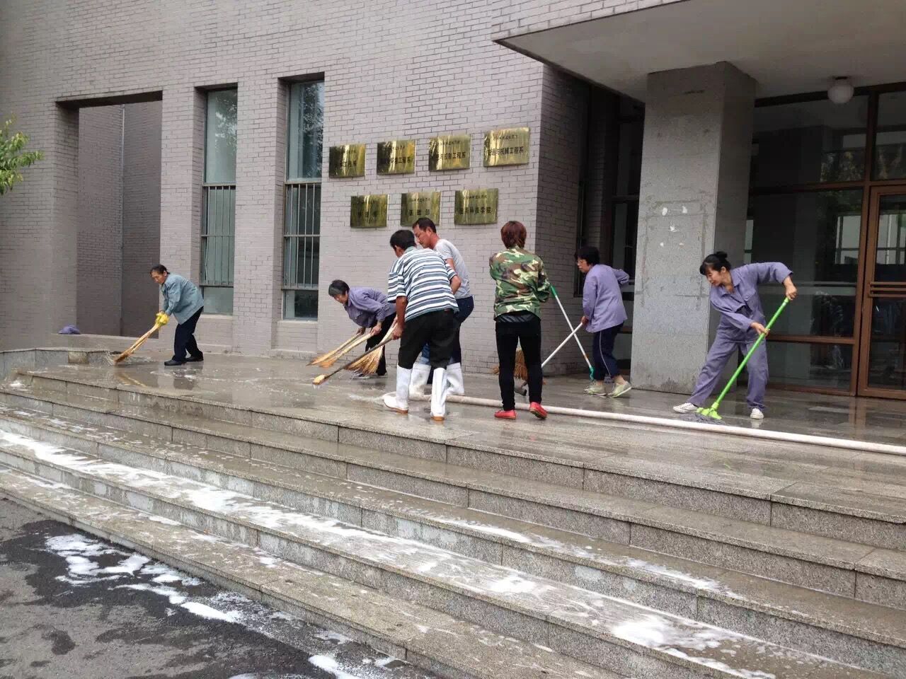 9月23日,学校校园管理中心组织部分保洁人员对第一教学楼南北两侧台阶以及路面进行大清扫,为即将到来的“双节”贡献出自己对校园环境建设的一份力量。