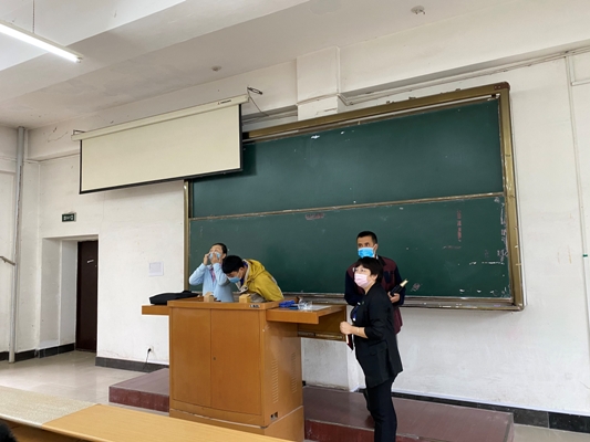 系检查组先后到第一教学楼、第三教学楼课堂,就开学首日教师线下授课情况、教学环境、教学设备、学生出勤率及课堂秩序等情况进行了细致的全面检查。为了保证教学工作的顺利开展,检查组细心观察,教室黑板的布置、教学设施的使用、教室人数的分布、卫生环境。从检查结果看,教学设施运作正常,学生出勤率高,教室干净整洁。课堂上教学秩序井然,教师准备充分,激情洋溢,循循善诱,学生听课认真,或安静思索,或奋笔疾书,师生表现出积极良好的精神风貌。课间,检查组同任课教师与学生互动交流,了解教师备课情况,询问学生疫情期间线上学习情况和返校后学习和生活的适应情况,认真听取意见,并对授课教师提出了宝贵的教学意见和建议,同时勉励学生要珍惜现在的学习环境,努力进取,不负韶华。