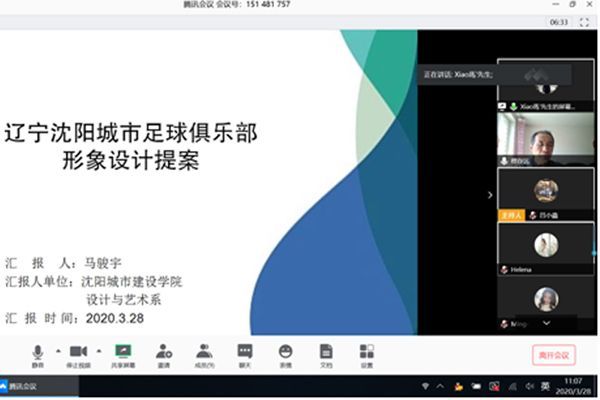 3月28日上午,设计与艺术系利用线上网络会议平台开展了“辽宁沈阳城市足球俱乐部”形象设计论证会。会议由系主任穆存远主持,副主任吕从娜,马骏宇、王珏、房丽娜、杨越茗、高旭、陈禹竹、于畅等教师参加论证会议。