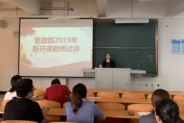 为了进一步提高教学质量,促进新学期教学工作顺利开展,思政部于7月18日在第二教学楼5-1教室开展2019年新开课教师试讲工作。思政部主任主持本次试讲,思政部全体教师听取试讲。