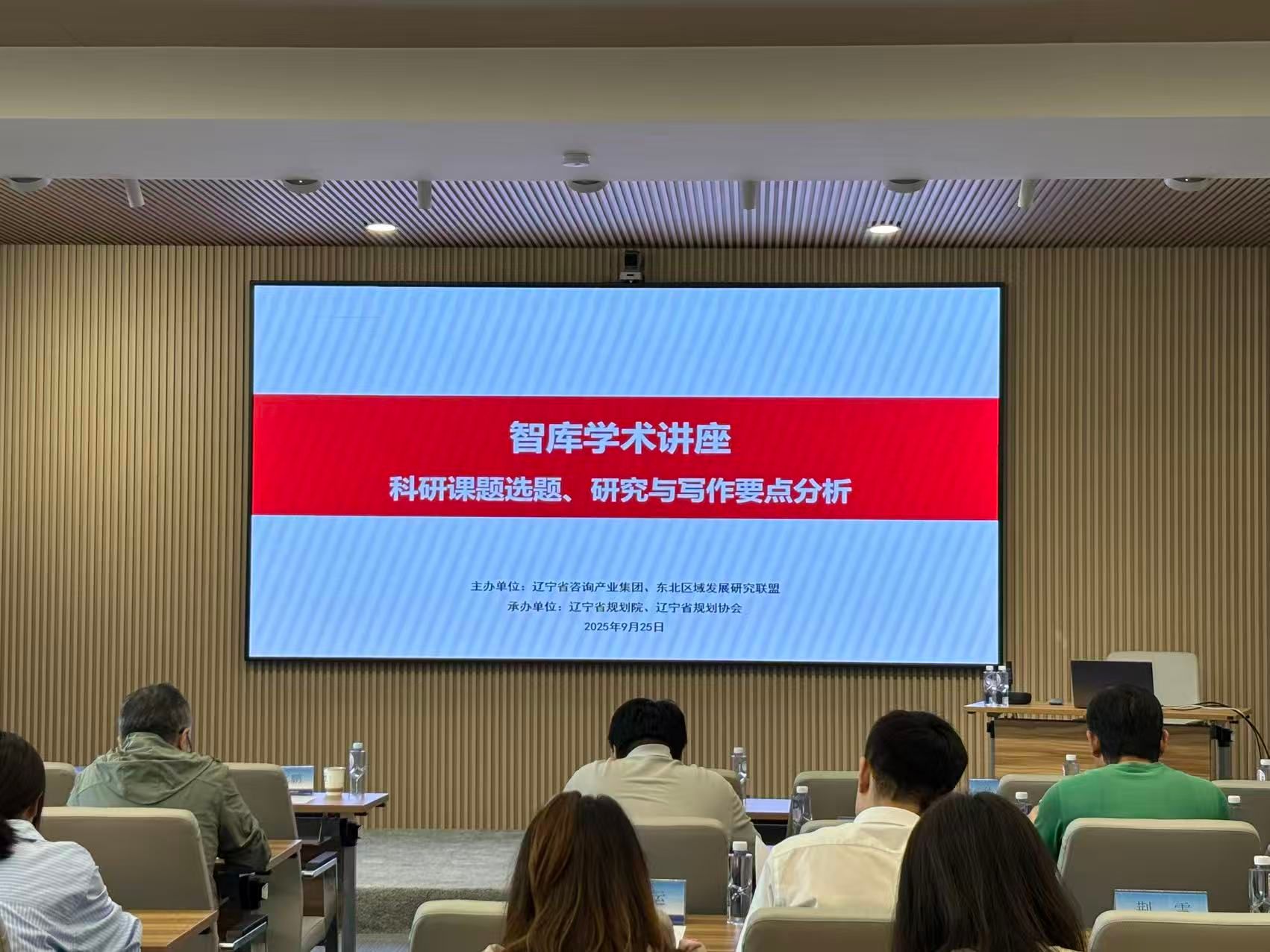 9月25日,辽宁省乡村振兴科技服务智库(以下简称“智库”)负责人吉燕宁带领团队,参加了由辽宁省重点新型智库、东北区域研究联盟(以下简称“联盟”)主办、辽宁省咨询产业集团有限公司承办的智库学术讲座会议。本次会议选址辽宁省城乡规划院一楼报告厅,特邀业内权威专家带来深度分享,为参会者搭建了高质量学术交流平台。