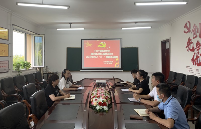 7月6日,土木工程系党总支在出新楼305会议室召开理论学习中心组专题学习会,集中学习习近平总书记在庆祝中国共产党成立100周年大会上重要讲话精神。会议由土木系党总支书记、副主任王涵主持。土木系主任赵中华、副主任齐庆会和中心组全体成员参加了学习会。