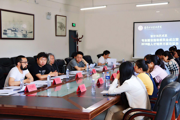 设计与艺术系于6月21日在第二教学楼309会议室召开专业建设指导委员会成立大会暨2018版人才培养方案论证会。沈阳建筑大学周耀教授、沈阳体育学院姚瑶教授、沈阳市中科创艺照明科技有限公司负责人蔡宝峰、沈阳业沣装饰设计咨询有限公司负责人洪忠涛、香港榀森设计有限公司负责人张姊含、沈阳喆礼科技有限公司负责人于喆和沈阳市福全广告设计中心负责人蔡福全作为校外专家出席会议。会议由系主任穆存远主持,党总支书记、副主任李丹,副主任吕从娜,各专业教研室主任、研究所负责人参加了会议。