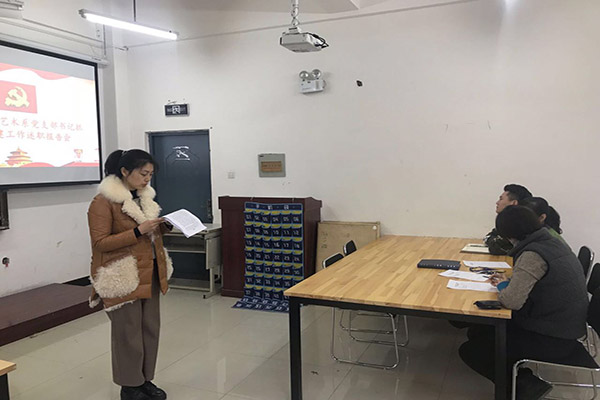 设计与艺术系教工党支部书记惠博首先就个人一年来的支部工作进行了全面汇报,她表示支部以党委引领、全体贯彻、书记负责、党员参与的形式开展党建工作部署的落实。自学院党委下发《关于推进“两学一做”学习教育常态化制度化的意见》等文件以来,支部积极开展2017年理论学习计划的安排,传达学院党委关于加强支部建设意见的会议精神,支部各位党员同志表示将会严格落实校园先锋工程、主题党日活动、“三会一课”等各类工作,把支部工作抓深、抓细、抓实。