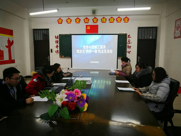 根据认真执行《关于新形势下党内政治生活的若干准则》和省委《关于严格党的组织生活制度的意见》的精神和要求,按照《2017年沈阳城市建设学院党员领导干部开展“两学一做”学习教育指导方案》的工作安排,信息与控制工程系党总支不忘初心、牢记使命,于12月28日召开领导班子民主生活会。会议由信息系学生党支部书记靳凯主持,党总支全体委员出席会议。