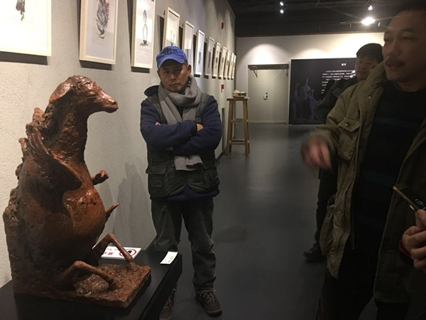 金志鹏老师到展热情讲解了作品从草图立意、到雕塑的创作过程以及自己三十年的雕塑创作经历。展览作品丰富,技艺精湛,饱含了创作者自己对社会的深刻感悟,且有丰厚时代内涵。